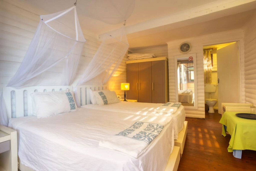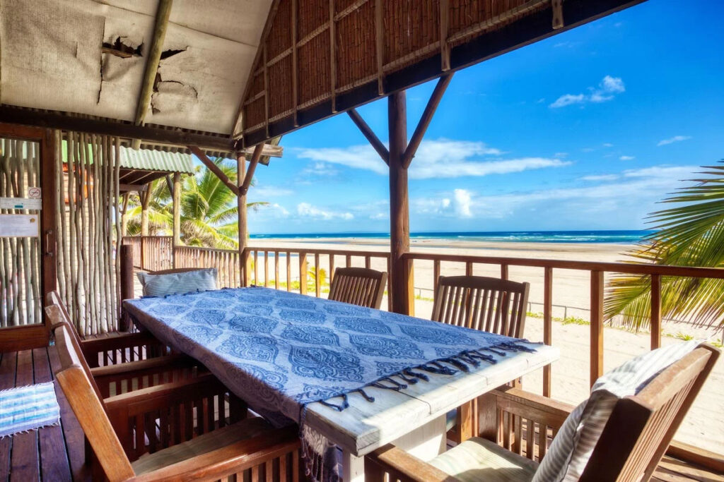 Discover our 15 unique self-catering houses at Farol da Barra, each thoughtfully designed to offer a cozy and authentic Mozambican beachside retreat. All 15 units are equipped with the following features: Direct beach access, 50m from the beach; Sea-facing wooden deck; Outdoor gas braai / BBQ facilities; Outdoor dining area; Fully equipped kitchen; Fans in bedrooms; Mosquito nets; Restaurant with pool on site; On-site security
